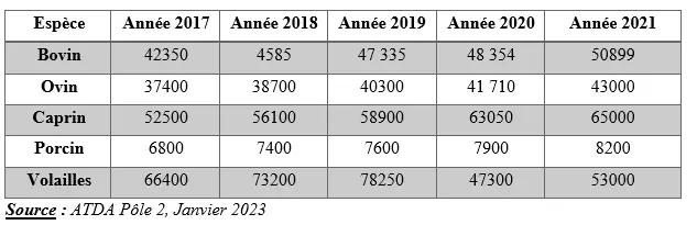 Depuis plus de vingt (20) ans, il n’a pas eu un recensement du cheptel national. Seules les estimations sont utilisées pour le moment. Cependant, au niveau local, les statistiques réelles obtenues sont celles du recensement de décembre 2021.